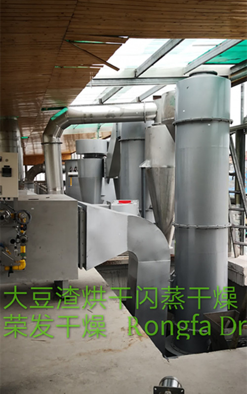 榮發干燥的大豆纖維渣專用閃蒸干燥機運行成功-用于寵物用品“豆腐貓砂”原料大豆纖維渣烘干