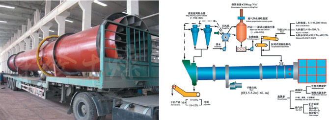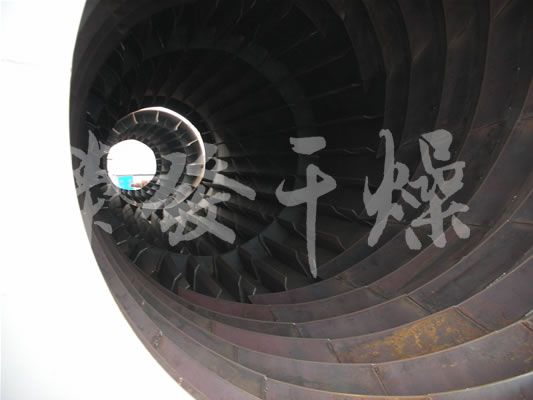 濕物料從干燥機一端投入后,在內筒均布的抄板器翻動下,物料在干燥器內均勻分布與分散,并與并流(逆流)的熱空氣充分接觸,加快了干燥傳熱,傳至推動力。在干燥過程中,物料在帶有傾斜度的抄板和熱氣流的作用下,可調控地運動至干燥機另一段星形卸料閥排出成品。