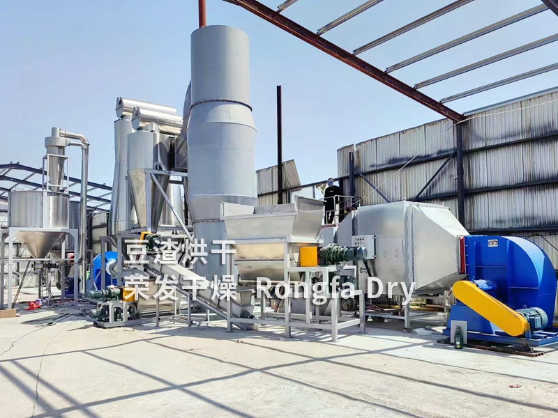 案例概述:榮發干燥研發制造的豆渣干燥機是在閃蒸干燥機基礎上升級改造的專用豆渣烘干機,采用一體式連續收集料裝置,產能較高。能夠解決豆渣烘干難度大、不易干燥均勻等難題,使烘出的物料色澤好,無糊料,低能耗,營養不易損失。